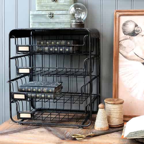 Chic Antique Fil de Fer Kurv med 4 Rum Antique Zink