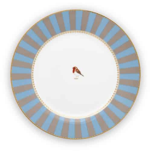 Pip Studio Tallerken Love Birds Stripes Blå-khaki 21 cm