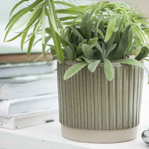 Ib Laursen Blomsterkrukke med Riller Dusty Green Stor