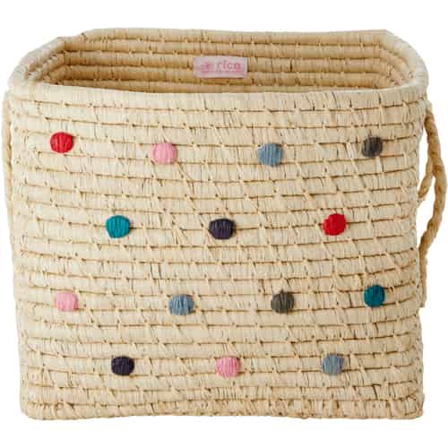 Rice Raffia Kurv - Kvadratisk - Raffiahåndtag - Dots - 'Believe in Red Lipstick' Colors