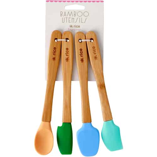 Rice Silikone Dejskraber - Bambus Håndtag - 4 'Let's Summer' Colors - Lille - Sæt med 4