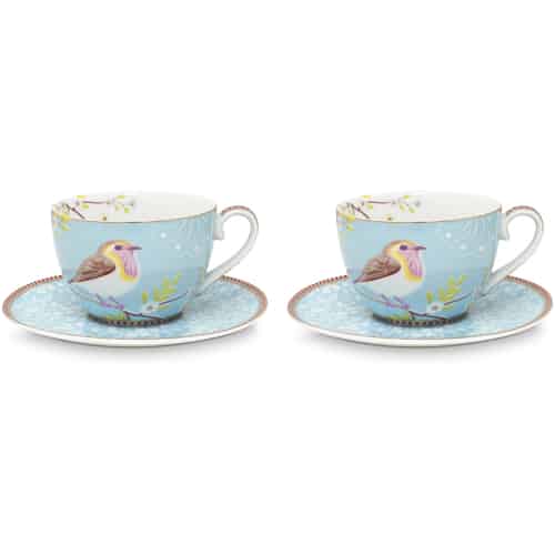 Pip Studio Kopper & Underkopper Early Bird Blå Sæt med 2 i Gaveæske