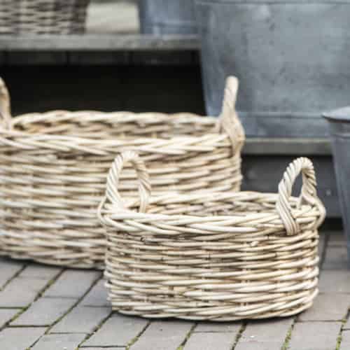 Ib Laursen Kurvesæt Rattan Oval med 2 Håndtag Honningfarvet Sæt med 2