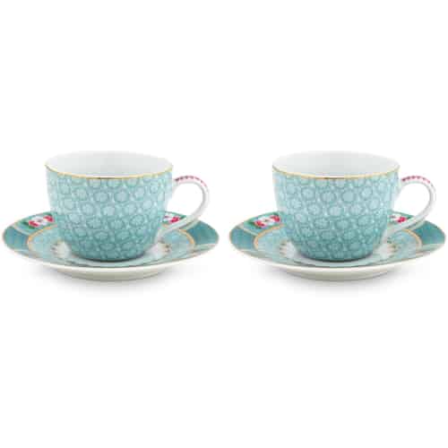 Pip Studio Cappuccino-kopper & Underkopper Blushing Birds Blå Sæt med 2 i Gaveæske