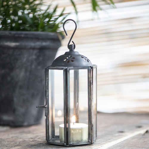 Ib Laursen Lanterne mini Sekskantet Rund Top med Mønster Factory Sort