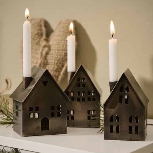 Ib Laursen Lysestage til Fyrfadslys Husfacade Messing 3 stk