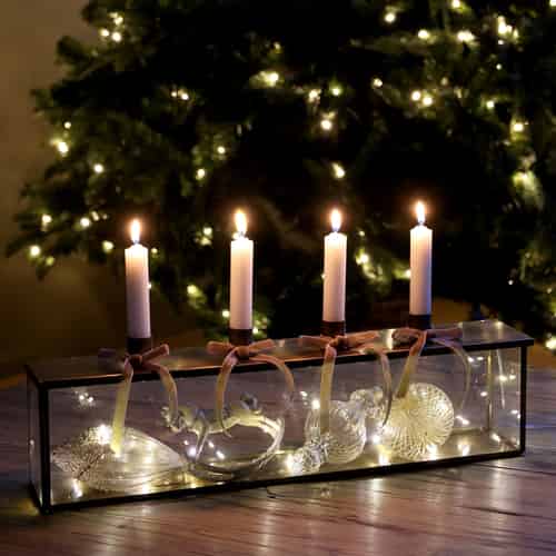 Chic Antique Stage med 4 Lysholdere og Glasboks Antique Guld