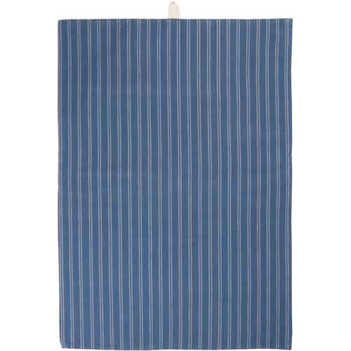 Ib Laursen Viskestykke Samuel Mørkeblå med Naturfarvede Tynde Striber