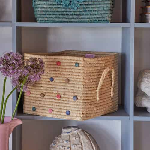Rice Raffia Kurv - Kvadratisk - Raffiahåndtag - "A New York Minute" Prikker