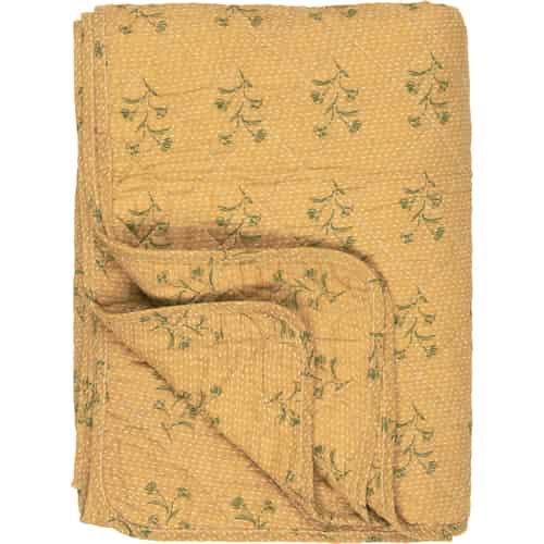 Ib Laursen Quilt Mustard med Grønne Blomster 130 x 180 cm