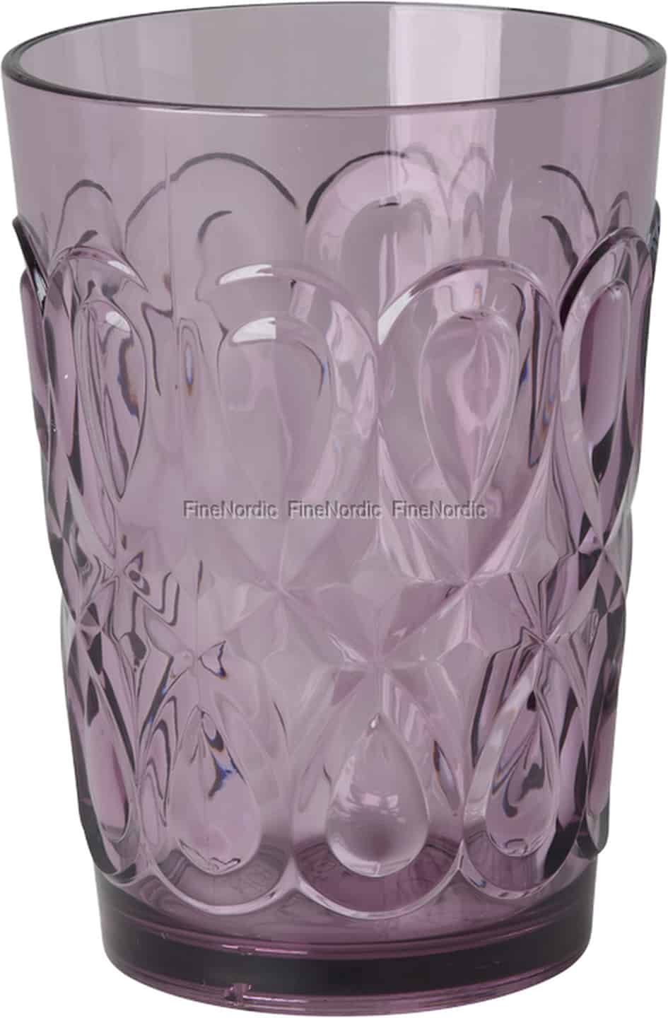 Fra det danske mærke Rice er dette glas en hyldest til farver og bekvemmelighed. Den smukke 'soft plum'-nuance tilføjer en blid varme til din borddækning, mens det detaljerede, prægede mønster giver det en vidunderligt taktil kvalitet og et udtryk, der minder om værdsatte antikke glas. Det er designet til dem, der sætter pris på skønhed i hverdagen, og som forvandler et simpelt glas vand eller juice til en dejlig oplevelse.