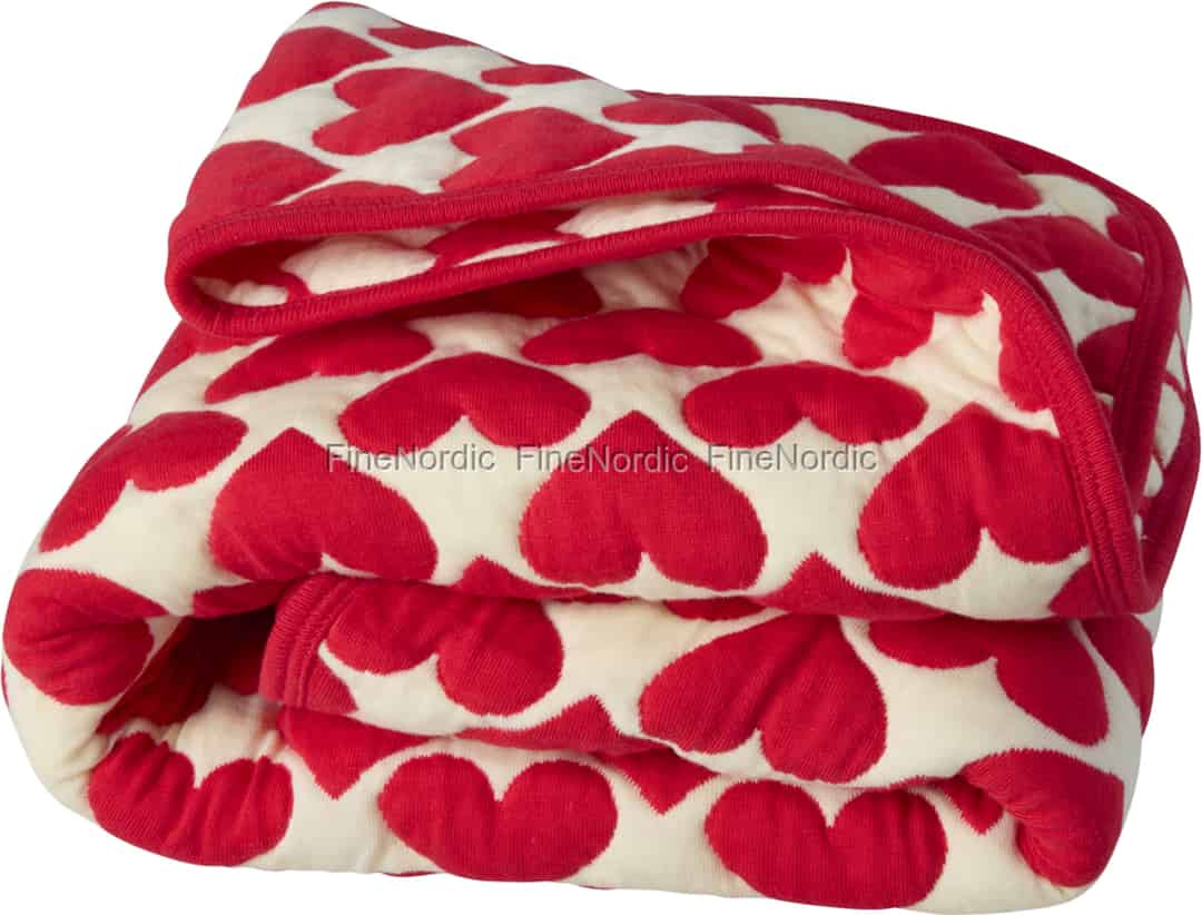 Forestil dig det blødeste, mest hyggelige kram i form af et tæppe. Dette smukke, quiltede bomuldstæppe fra Rice, med sine glade røde hjerter, er skabt til at bringe varme og tryghed til dit barns stille stunder.