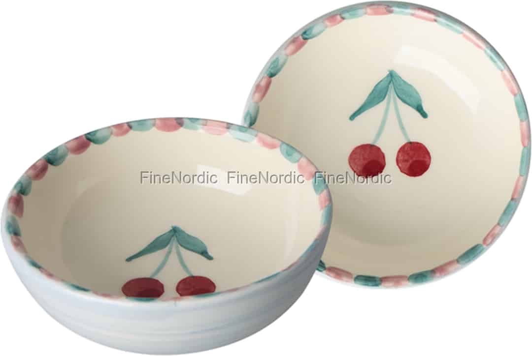 Forestil dig dit morgenbord, der lyser op af sommerlige kirsebærs legende charme. Denne yndige lille skål fra Rice tilføjer et strejf af håndmalet kunst til dine hverdagsøjeblikke, perfekt til din yndlingsmarmelade eller friske bær.