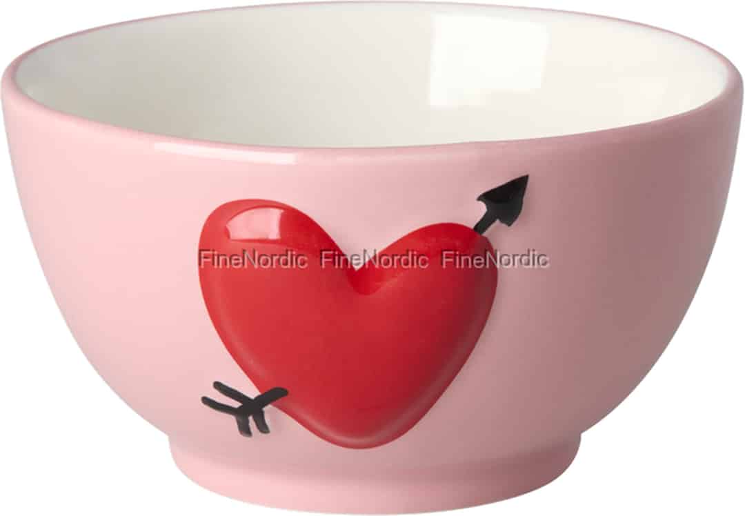 Fra Rice's kreative verden kommer en skål, der er designet til at få dig til at smile. Det er en lille fejring af hverdagen, skabt til at rumme mere end bare mad – den rummer de glade øjeblikke, de stille morgener og de farverige snacks, der lyser din dag op. Den bløde, lyserøde keramik danner et smukt lærred for det dristige, blanke røde hjerte og skaber et produkt, der er lige så dejligt at se på, som det er at bruge. Dette er service med personlighed, designet til at bringe lidt ekstra gnist ind i dit hjem.