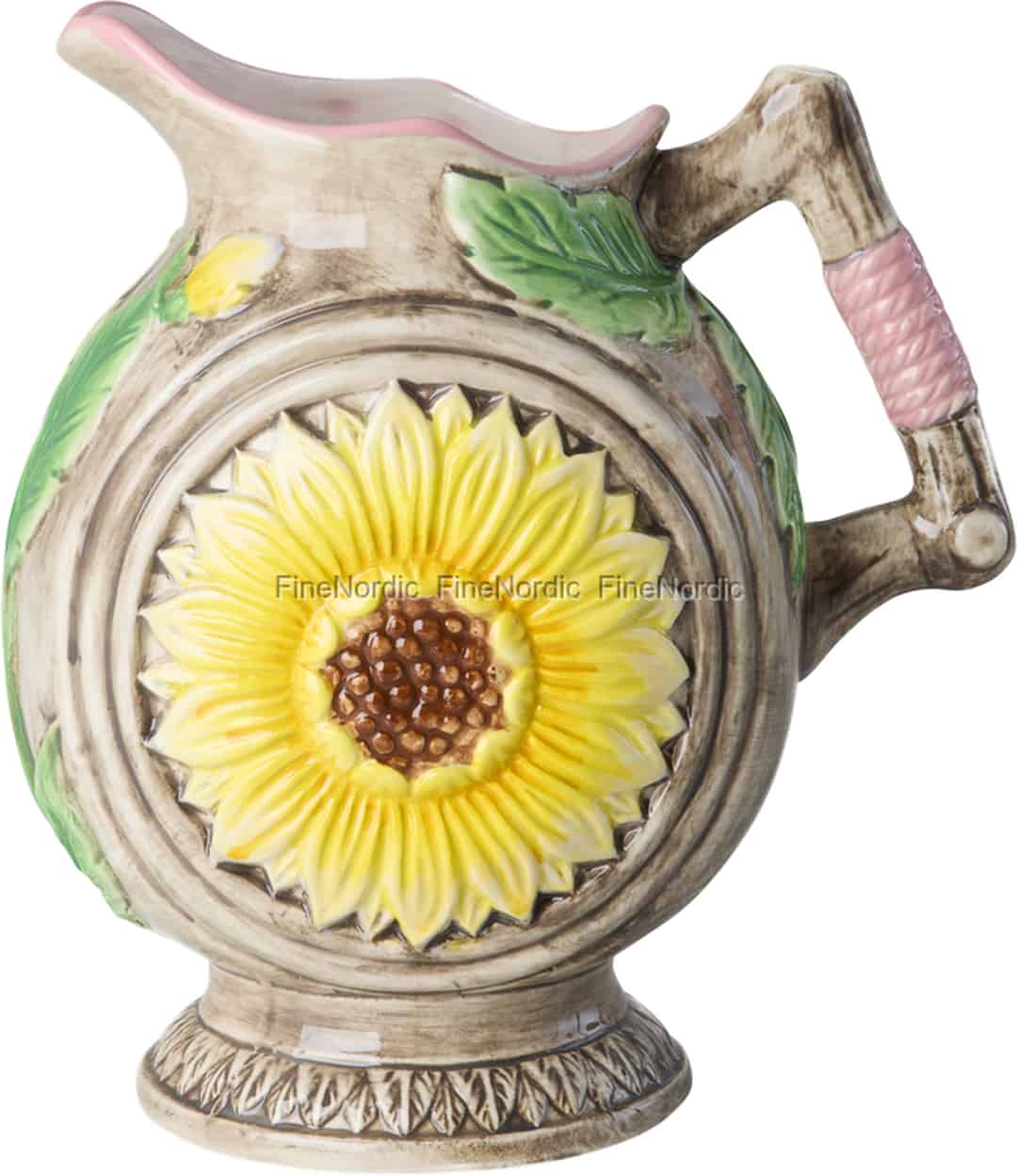 Fejr den enkle, strålende glæde ved en solsikke i fuldt flor. Denne vidunderligt karakterfulde vase fra Rice er en hyldest til solrige dage og landhaver, fremstillet af keramik med en rustik, trælignende tekstur, der føles dejlig at røre ved. Den store, prægede solsikke er hjertet i designet, og dens levende gule kronblade bringer øjeblikkelig glæde til ethvert rum. Charmerende detaljer, som hanken formet som en kvist og det uventede strejf af lyserød, giver den en unik personlighed, der er indbegrebet af Rice. Det er et stykke, der fortæller en historie om varme og lykke.