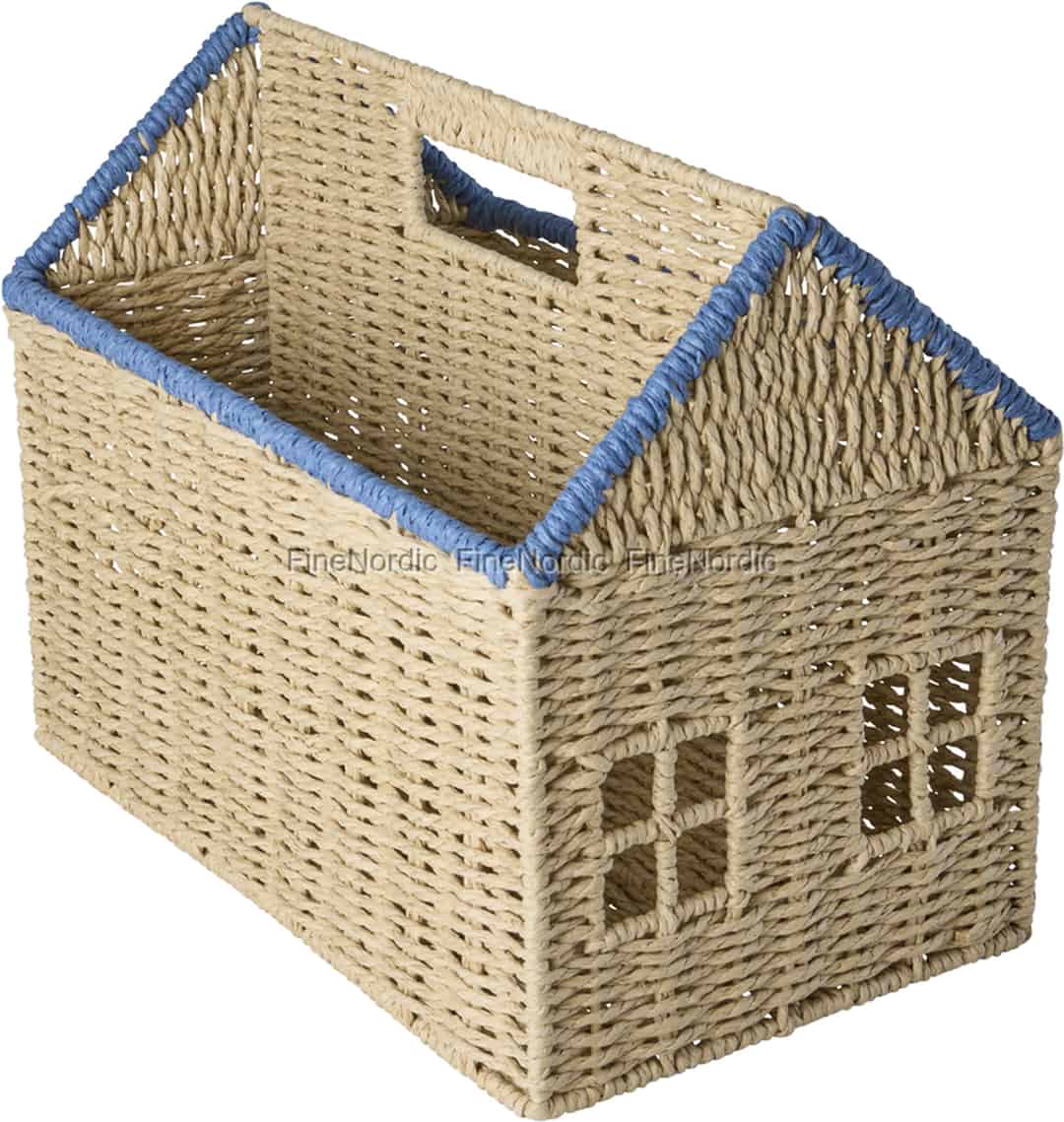 Rice Magasinholder i papirsnor - Husform - Blå detaljer
