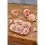 Fra de grebsvenlige hanke på tudkoppen til bestikket i den perfekte størrelse er hvert element designet med små hænder i tankerne. Den ruminddelte tallerken hjælper med at holde forskellige madvarer adskilt, hvilket er perfekt til at opmuntre dem til at prøve nye smage. Sættet er fremstillet af robust melamin, hvilket gør det til et praktisk valg til hverdagsbrug, der bringer lidt ekstra glimmer og en masse sjov til familiens bord.