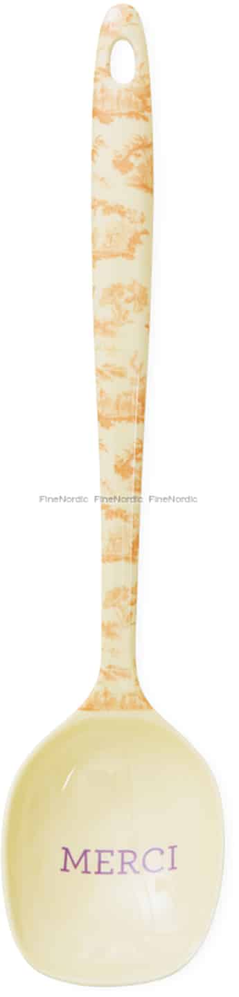 Lad 'Glory Days'-grydeskeen fra Rice føre dig til et solbeskinnet køkken på den franske landside. Det fine, orange toile-mønster på det cremefarvede skaft fortæller en historie om idylliske landskaber og enklere tider, og bringer en fortællende charme ind i dit hjem. Hver en detalje, fra den blanke finish til det søde 'MERCI' i skeens hoved, er designet til at tænde en lille gnist af glæde i hverdagen. Det er mere end bare en grydeske; det er en lille fejring af skønhed i hjertet af dit hjem.