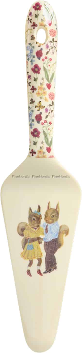 Forestil dig at servere en friskbagt kage, ikke bare med et redskab, men med et lille kunstværk. Denne smukke kagespade, skabt i et samarbejde mellem Rice og den anerkendte kunstner Nathalie Lété, er designet til netop det. Den cremefarvede bund danner det perfekte lærred for en finurlig scene: to søde egern, klædt i deres fineste tøj, der deler en dans. Det er et design, der vækker fantasien og starter samtaler, og som forvandler en simpel dessert til midtpunktet for et lykkeligt minde.