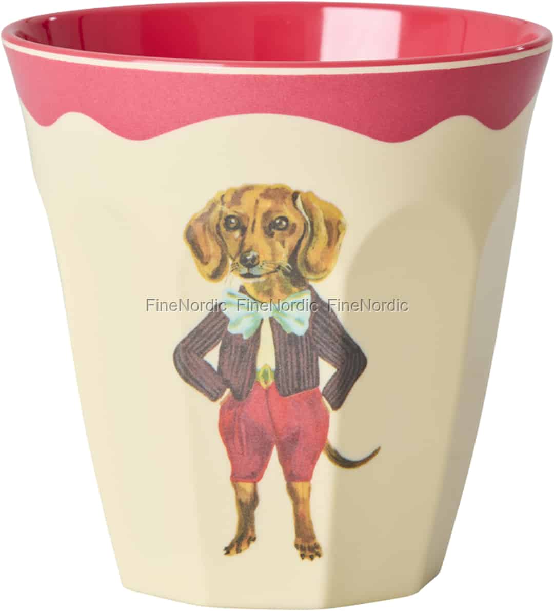 Opdag den fortryllende verden fra Rice og den franske kunstner Nathalie Lété, hvor hverdagsgenstande forvandles til funktionel kunst. Denne medium kop fortæller en lille historie med hvert et blik, med en vidunderligt fin gravhund i sit stiveste puds i hovedrollen. Den varme, cremefarvede yderside danner det perfekte lærred for hans portræt, mens den livlige 'Red Kiss'-inderside tilføjer et overraskende strejf af glædesfyldt farve, når du tager en tår.