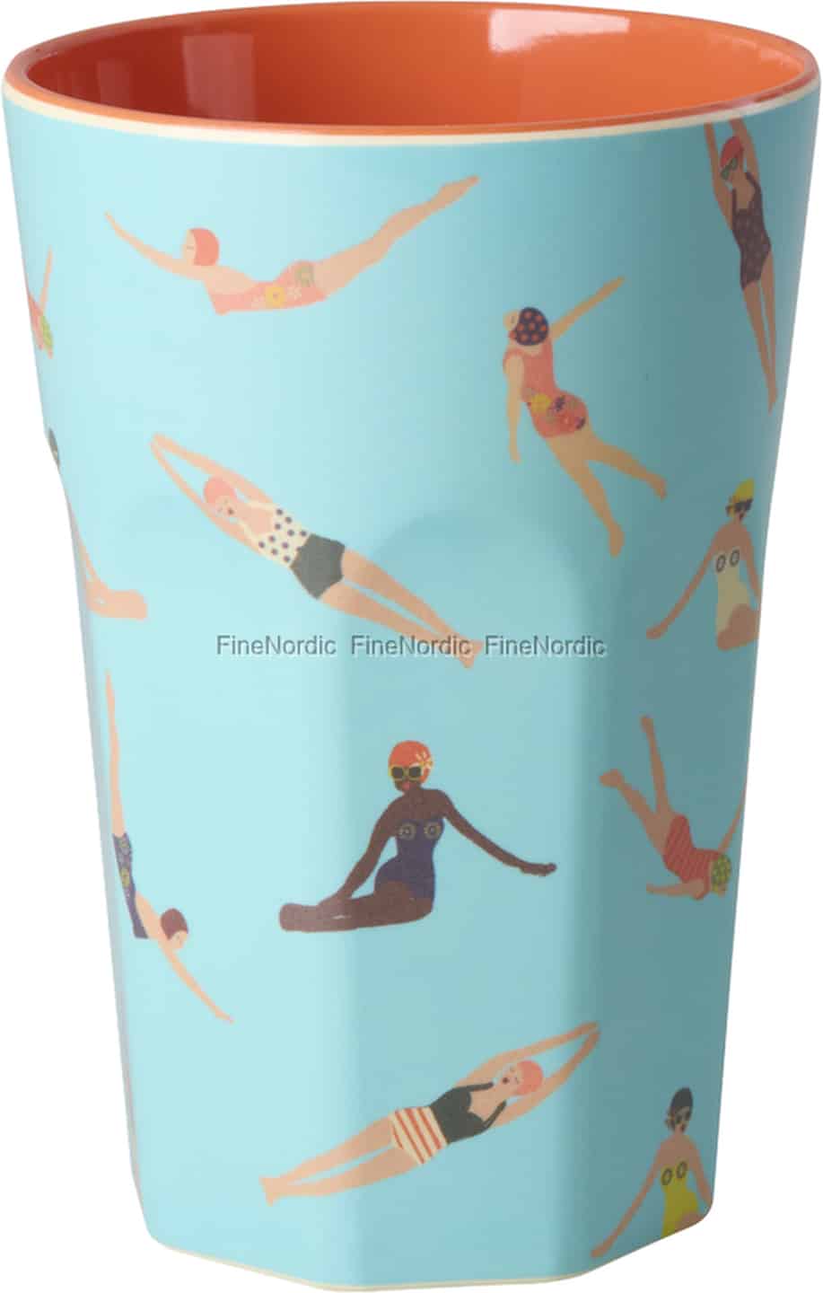 Lad hver en slurk tage dig med til en solbeskinnet eftermiddag ved poolen. Denne herlige, høje kop fra Rice er prydet med et charmerende hold af retro-svømmere, der hver især dykker, flyder og slapper af på deres egen stilfulde måde. Den kølige blå yderside er den perfekte baggrund for denne legesyge scene, mens det uventede strejf af varm koralfarve indeni føles som en solstråle. Det er et design, der fortæller en historie om fritid, latter og de enkle glæder ved en dag tilbragt udendørs.