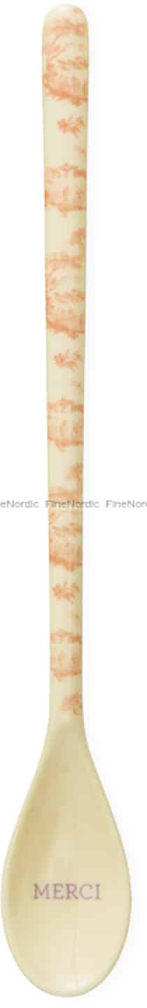 Nogle øjeblikke er små, men rummer så megen varme. Denne yndige latteske fra Rice er designet til at hylde netop det. Skaftet er prydet med et fint 'Toile de rice'-mønster i en blød orangerød farve, der leder tankerne hen på klassiske franske tekstiler og solbeskinnede, landlige scener. Mens du rører i din yndlingsdrik, afsløres et blidt 'Merci' i skålen – en stille påmindelse om at finde taknemmelighed i dagens små glæder, fra den første slurk kaffe til en delt dessert.