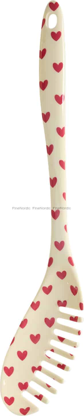Det danske mærke Rice tror på at tilføje farve og glæde til hverdagen, og denne smukke pastaske er et perfekt eksempel på deres filosofi. Den er mere end blot et redskab; den er et lille stykke lykke, designet til at lyse op i dine daglige rutiner. Mønsteret "Favorite Hearts" er et symbol på livsglæde, der forvandler den simple handling at tilberede og servere mad til en hjertevarm oplevelse. Du vil smile, hver gang du tager den i hånden, uanset om du serverer en hyggelig portion pasta for din familie eller en farverig sommersalat for venner.