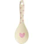 Fra Rice's farverige verden kommer en serveringsske, der er mere end blot et redskab; den er en invitation til at fejre hverdagen. 'Favorite Hearts'-skeen indfanger mærkets filosofi om at bringe farver og glæde ind i dit hjem. Den glatte, blanke melamin føles dejlig i hånden, mens de muntre, lyserøde hjerter på en cremefarvet baggrund forvandler den simple handling at servere et måltid til et øjeblik af ren glæde. Forestil dig den hvile i en stor skål med friske, grønne salatblade – en skøn kontrast, der lyser hele bordet op.