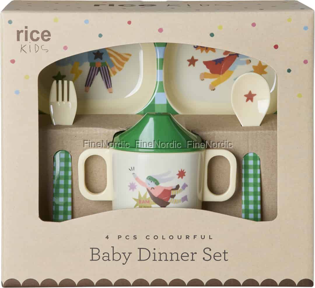 Gør hvert måltid til en herlig fortælling med dette charmerende Hero-spisesæt fra Rice. Sættet er designet til at fange dit barns fantasi, og de legesyge superhelte-illustrationer og glade farver gør morgenmad, frokost og aftensmad til et eventyr fyldt med glæde.