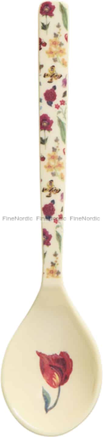 Denne ske er mere end blot et smukt redskab; den er designet til livets glade stunder. Dens robuste konstruktion gør den til en pålidelig ledsager til alt fra morgengrød til eftermiddagsis. Den yndige røde tulipan, der gemmer sig i skebladet, tilføjer en sidste, charmerende overraskelse. Lad dette lille stykke funktionel kunst bringe et smil på dine læber og et strejf af farve til dine daglige ritualer, og minde dig om, at skønhed kan findes i de mindste ting.