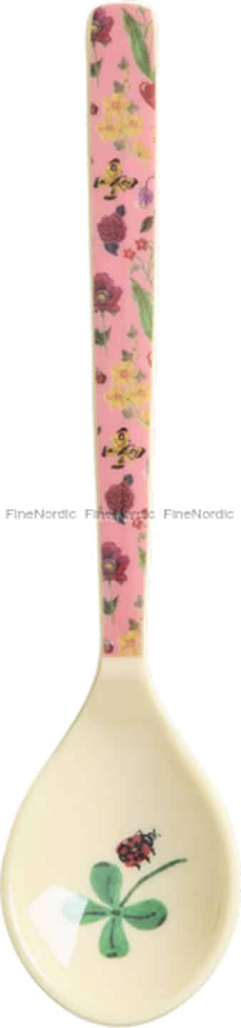 Når du rører i din kaffe eller tager din yndlingsmarmelade, afsløres en charmerende hemmelighed. I det cremefarvede skehoved gemmer der sig en heldig firkløver, som har fået besøg af en venlig mariehøne. Det er en finurlig detalje, der forvandler en simpel hverdagsrutine til et stille øjeblik af ren fryd. Holdbar, praktisk og fuldstændig fortryllende er denne ske et vidnesbyrd om Rice's filosofi om at tilføje farve og sjov til hverdagen.