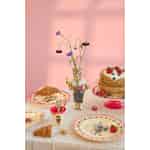 Lad din spiseoplevelse være en fejring af kunst og glæde med denne betagende tallerken i vintagestil fra Rice. Som en særlig kreation i samarbejde med den anerkendte franske kunstner Nathalie Lété er dens design en hjertevarm hyldest til naturens enkle skønhed. Den cremefarvede overflade er den perfekte baggrund for den detaljerede buket, hvor farverige fugle sidder blandt spinkle blomster, og sommerfugle flagrer langs den bølgede, koralfarvede kant. Det er et stykke, der fortæller en historie og indbyder til samtale og smil.