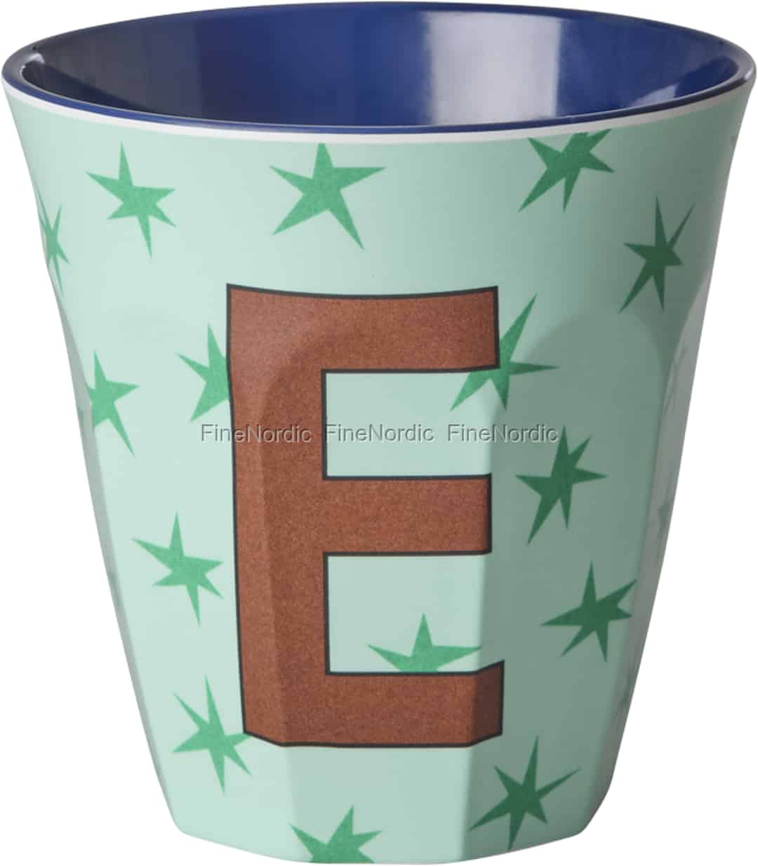 Ydersiden i en blød mintgrøn farve, drysset med glade stjerner, skaber en legende baggrund for det markante brune bogstav. Indeni tilføjer en overraskende dybblå farve et ekstra lag af sjov til hver en drik. Det er mere end bare en kop; det er en måde at få dit lille barn til at føle sig set og speciel på, og det forvandler den simple handling at drikke til et glad og farverigt ritual. En vidunderlig start på en livslang kærlighed til smukt, funktionelt design.