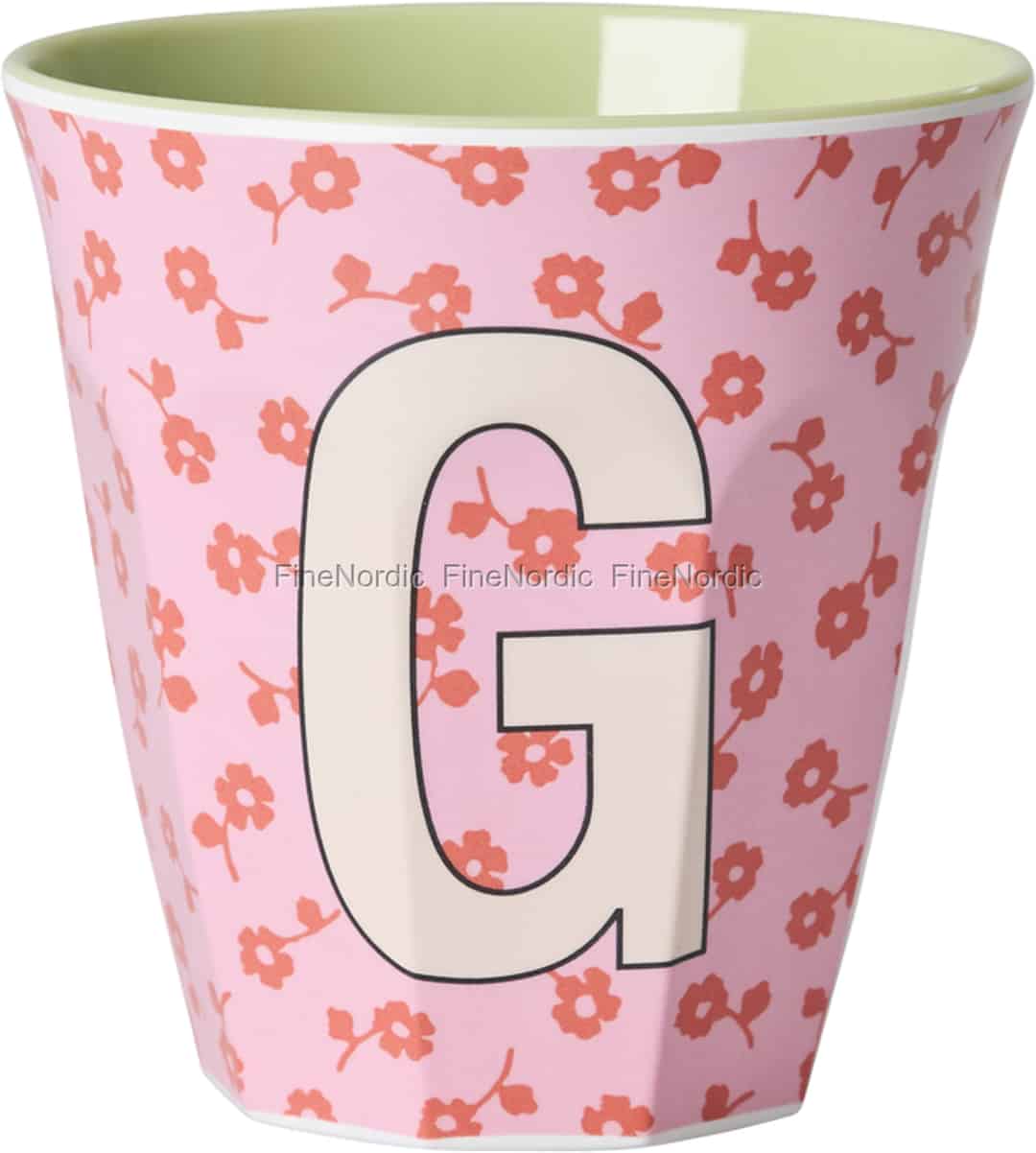 Oplev den enkle glæde ved en kop, der føles, som om den er skabt kun til dig. Rice bringer sin velkendte danske livsglæde til denne smukke melaminkop, hvor et sødt, retro-inspireret blomsterprint forenes med dit helt eget bogstav. Den bløde, lyserøde yderside er som et lærred for små blomster, mens den overraskende, kølige lysegrønne inderside tilføjer et moderne pift. Det er et design, der føles både nostalgisk og vidunderligt friskt, klar til at lyse op i dine hverdagsstunder.