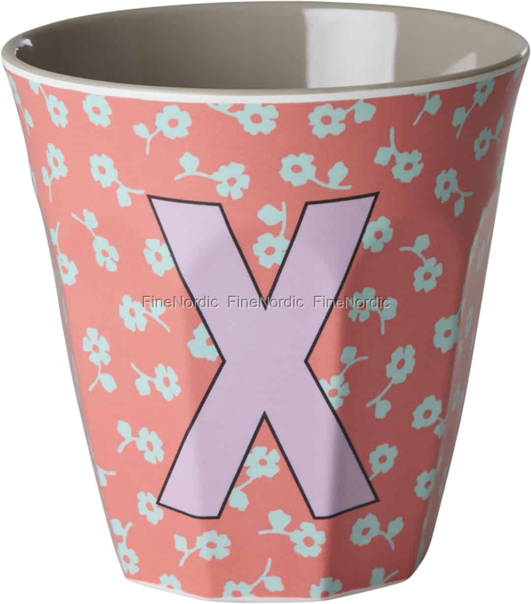 Oplev et lille stykke hverdagsmagi med denne alfabetkop fra Rice. Den er designet i Danmark og indfanger mærkets filosofi om at bringe farver og sjov ind i dagligdagen. Den glade koral-lyserøde baggrund er prydet med søde, lyseblå blomster, der skaber et dejligt lærred for det markante lilla bogstav 'X'. Koppen er fremstillet af holdbart melamin, føles glat og robust i hænderne og lover at være en langvarig ledsager til dine yndlingsdrikke, fra den første kop te om morgenen til en forfriskende limonade i haven.