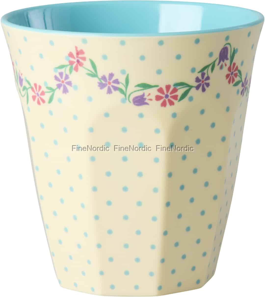 Forestil dig et strejf af forårscharme, uanset årstiden. Denne yndige melaminkop fra Rice bringer en legende lethed ind i din hverdag med sin søde blomsterguirlande og glade polkaprikker.