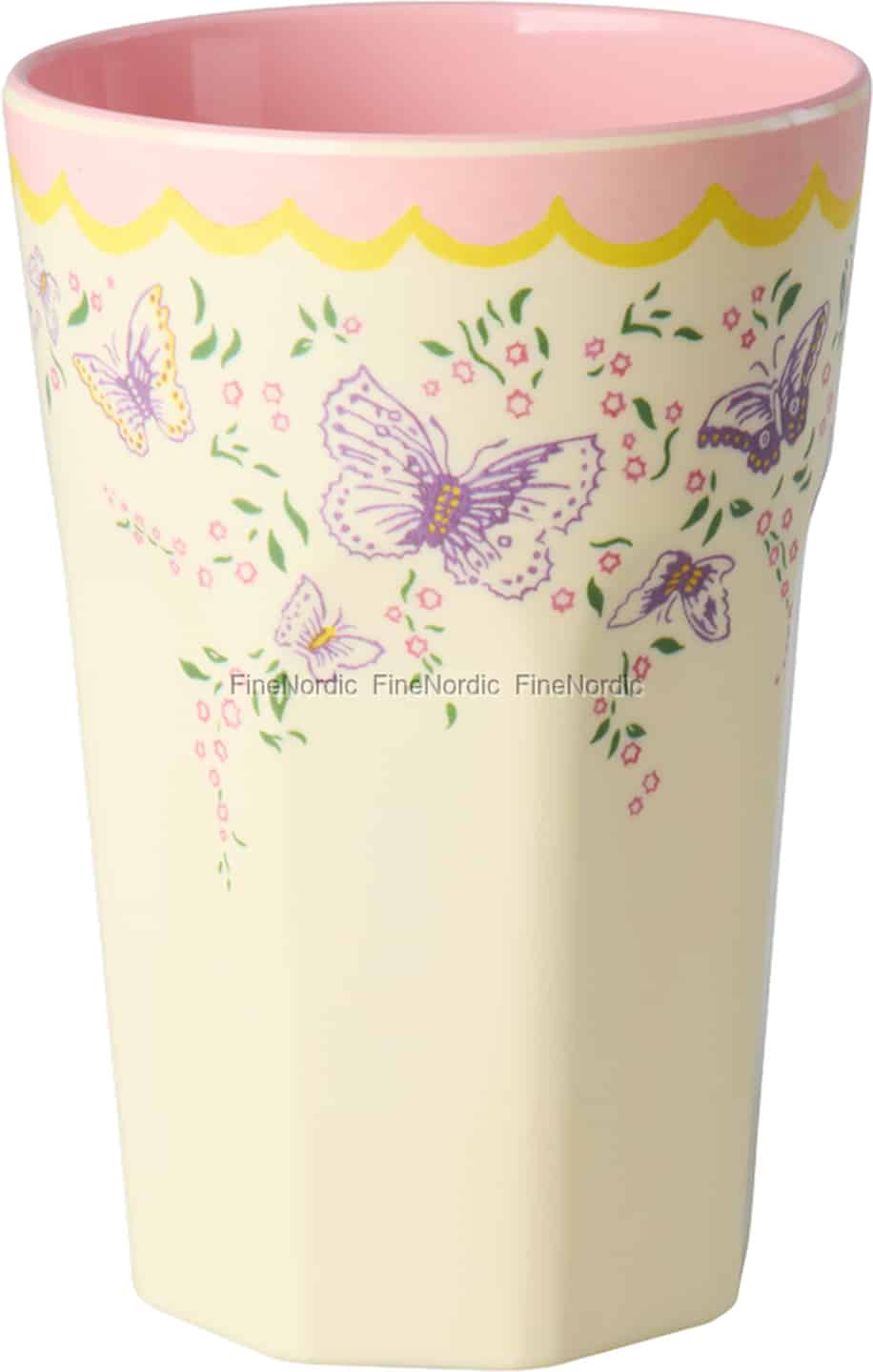 Forestil dig din morgenjuice eller eftermiddags-iste serveret i en kop, der føles som en solrig have. Denne dejlige melaminkop fra Rice, med sine charmerende sommerfugle og søde blomster, er skabt til at bringe et lille øjeblik af glæde ind i din dag.
