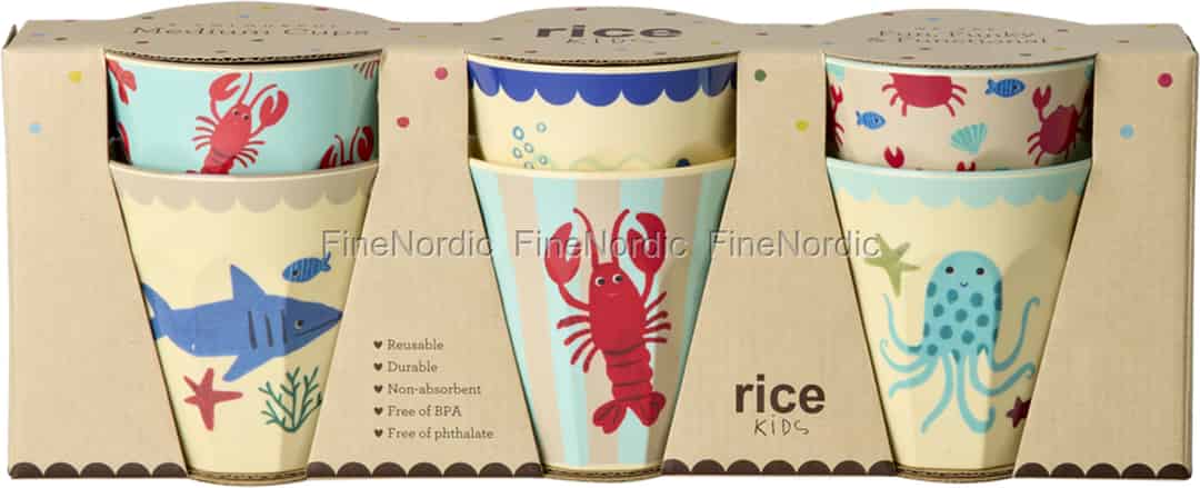 Lad din lilles fantasi dykke ned i en vidunderlig undervandsverden. Dette herlige sæt med seks melaminkopper fra Rice bringer venlige hajer, glade hummere og smilende blæksprutter til bordet og forvandler hver en tår til en glædelig historie fra havet.