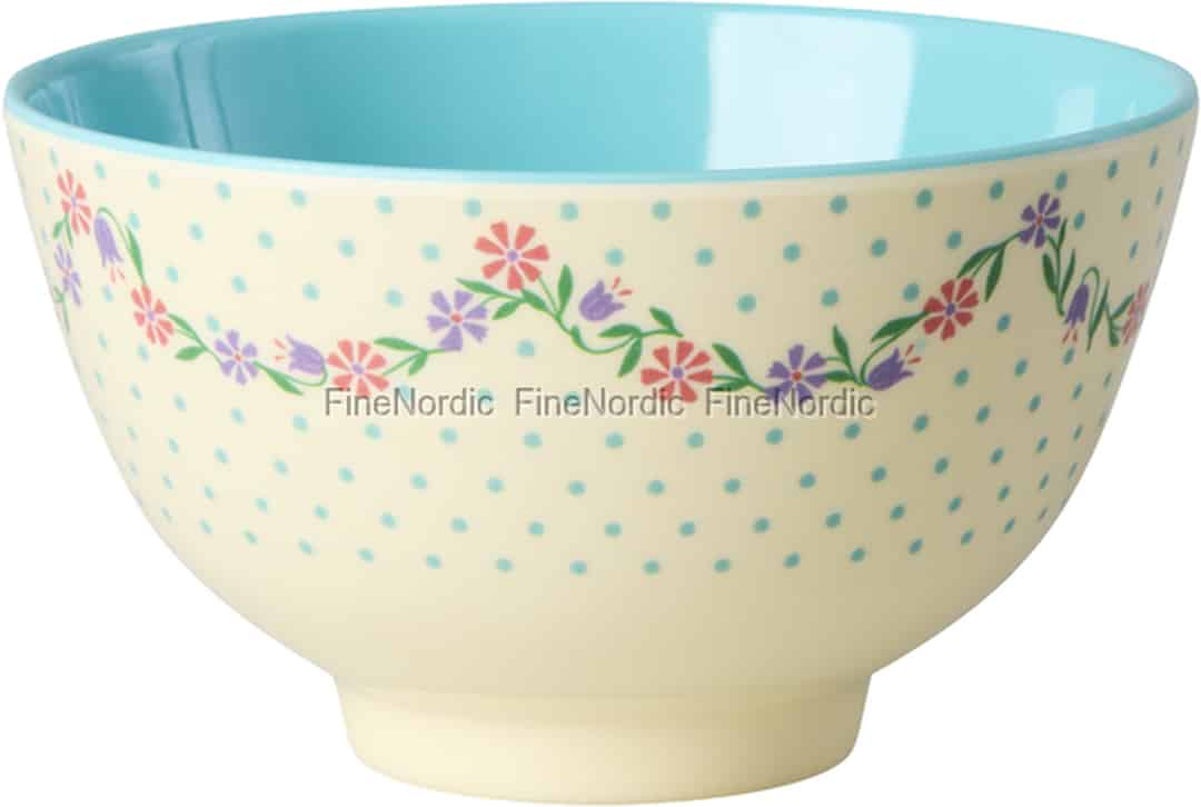 Forestil dig den enkle glæde ved en sommereng, fanget i en charmerende lille skål. Med sine legesyge prikker og en fin blomsterguirlande bringer dette stykke fra Rice et strejf af finurlig skønhed til dine daglige ritualer.