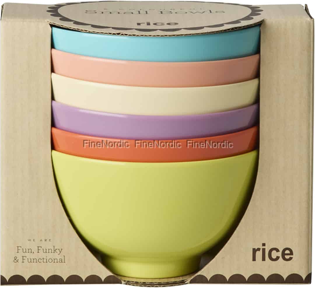 Rice Melaminskåle "Glory Days" Farver - Lille - Sæt med 6 i gaveæske