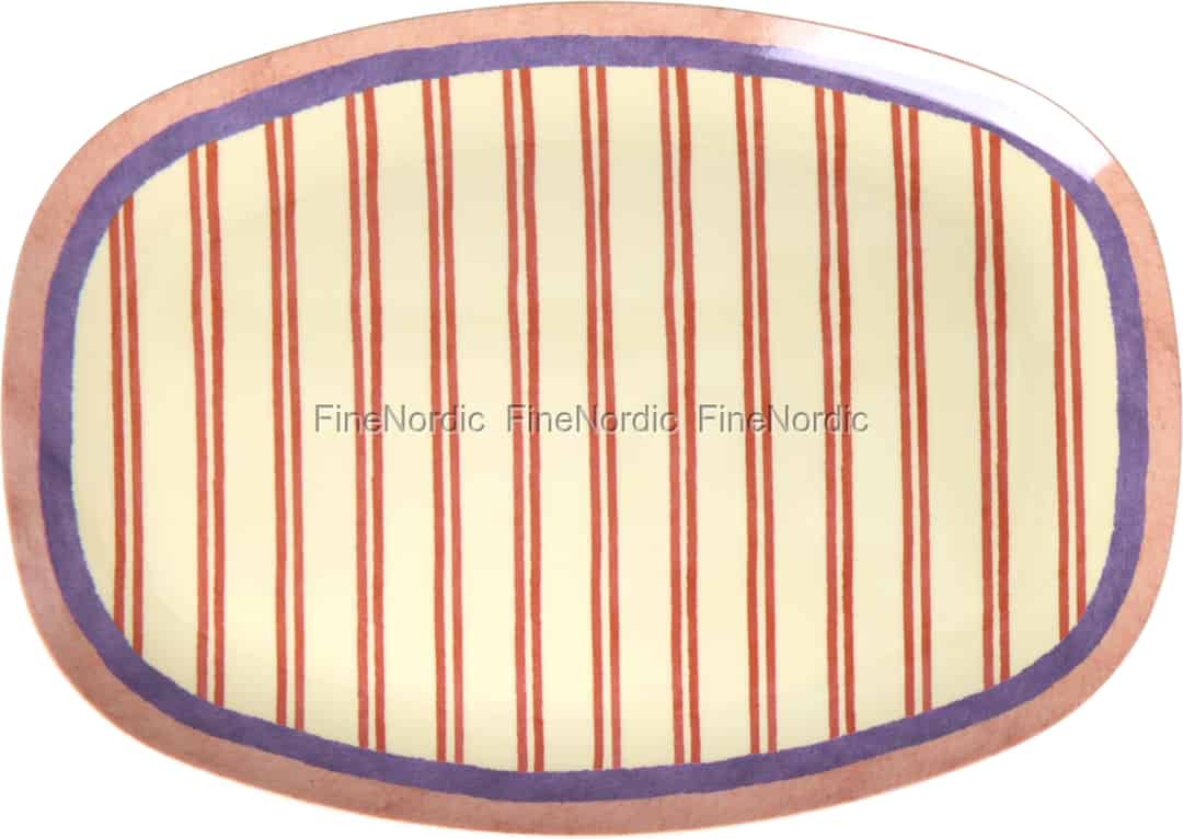 - Et lærred af glade farver: De legende røde striber, indrammet af en charmerende lilla og lyserød kant, giver tallerkenen en unik, kunstnerisk karakter. Den generøse størrelse på 30 x 22 cm er ideel til servering af alt fra sandwich til friske salater.