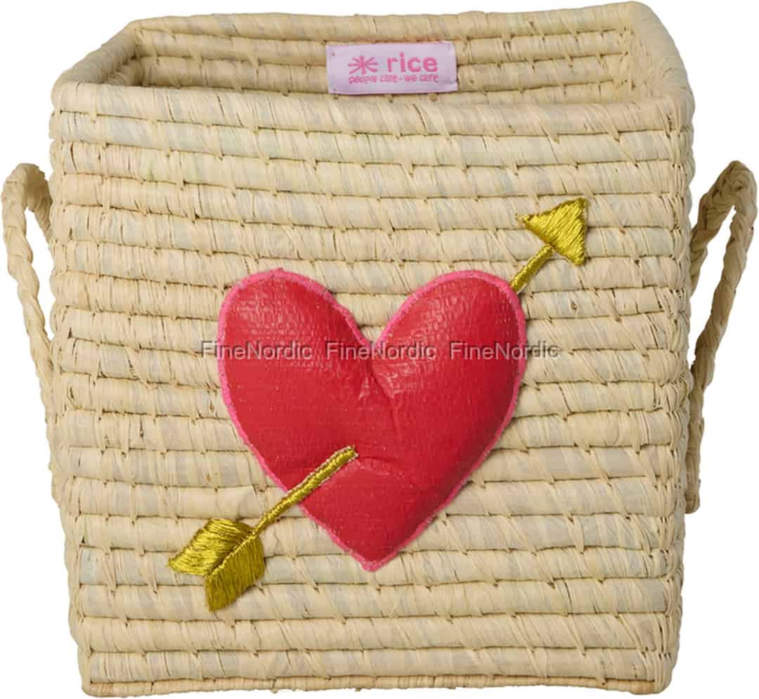 Bring lidt kærlighed ind i din opbevaring med denne skønne kurv fra Rice. Den er håndlavet af naturlig raffia, og dens legende hjerteapplikation og gyldne pil tilføjer et strejf af finurlighed til ethvert hjørne, hvilket forvandler den daglige oprydning til et glædeligt øjeblik.