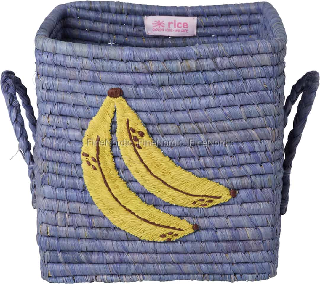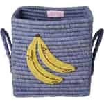 Bring et strejf af uventet glæde ind i dit hjem med denne vidunderlige kurv fra Rice. Det muntre bananbroderi og den smukke, støvede blå raffiafletning vil med garanti bringe et smil frem på dine læber, hver gang du ser den.
