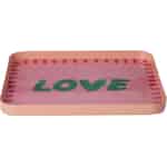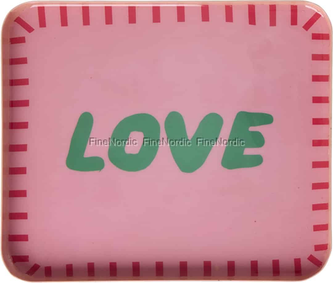Bring et strejf af legende charme ind i dine daglige rutiner med denne herlige metalbakke fra Rice. Den glade pink nuance og det dristige 'LOVE'-budskab vil med garanti bringe et smil frem på dine læber, hver gang du ser den.