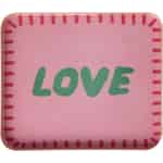 I Rice's verden forvandles hverdagsgenstande til øjeblikke af glæde, og denne dejlige metalbakke er et perfekt eksempel. Den er designet til at være mere end blot et sted for dine småting; den er en daglig dosis af lykke. Den dristige, venlige 'LOVE'-skrift, sat mod en baggrund af glædesfyldt pink, fungerer som en blid påmindelse om at værdsætte de små ting. Den legende stiplede kant tilføjer et strejf af finurlighed, der afspejler den omhu og sjov, som Rice lægger i enhver kreation.