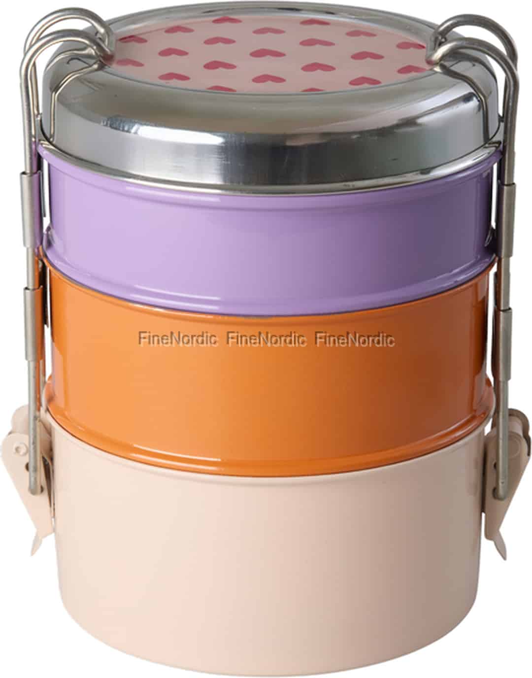 Rice Rund madkasse i rustfrit stål med 3 lag - Hjerteprint