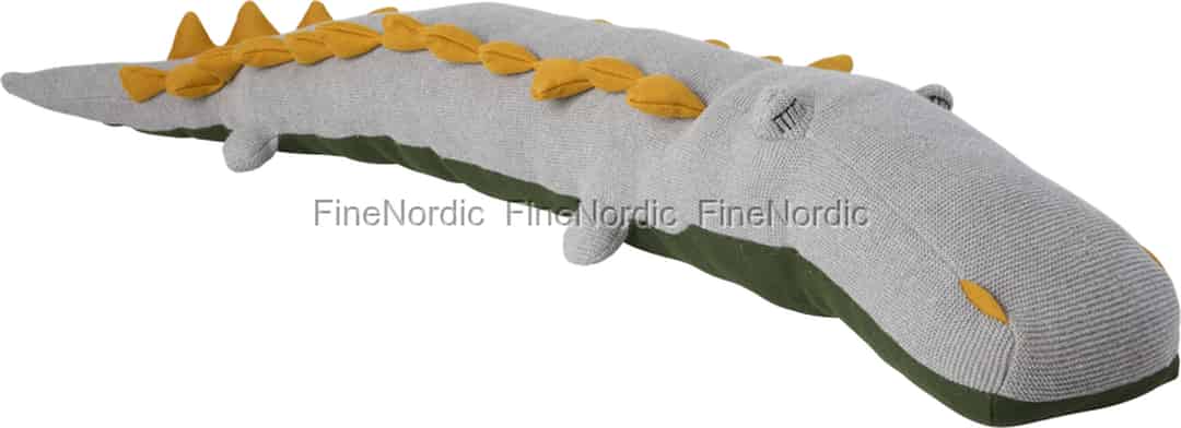 - Vidunderligt blød og taktil: Krokodillen er fremstillet af blødt, strikket bomuld og har en vidunderligt taktil overflade, der er perfekt at putte med og som inviterer til blide kram og sanseleg.