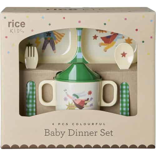Rice Melamin spisesæt i gaveæske "Hero" grøn - 4 dele