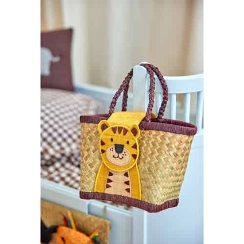 Rice Raffia Legetøjskurv - Dyre Tema - Mint - Medium