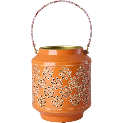 Rice Metallanterne - Blomstermønster - Stofbeklædt hank - Orange